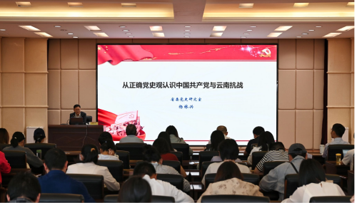 杨林兴围绕《从正确党史观认识中国共产党与云南抗战》主题,从三个方面作了系统阐述和深入解读。一是要牢固树立正确党史观和二战史观,坚决反对历史虚无主义,准确把握党的历史发展的主题主线与主流本质;二是要铭记云南抗战的光辉历史,深刻理解云南在全面抗战中的战略支点地位和各族人民共赴国难的伟大奉献;三是要全面认识中国共产党在云南抗战中发挥的不可替代作用。借助详实的史料与生动的史实,讲座生动再现了党领导下的抗日民族统一战线在云南的广泛实践与辉煌历程。
