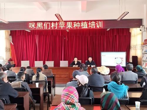 咪黑们村海拔高,降雨少,适合种植耐高寒农作物。经过多年的摸索和发展,已经形成了以萝卜、贡菜、洋芋、大白芸豆、荷兰豆为主的特色种业,但在水果种植上还有空白。咪黑们驻村工作队在走访中发现不少农户想尝试果树种植,但苦于没有技术指导。在了解到群众的需求之后,驻村工作队第一时间联系到云南农业大学,专门邀请有着多年一线指导经验的敖平星博士进村授课。