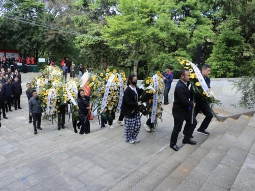为深入学习贯彻《党史学习教育工作条例》,推动树立和践行正确政绩观学习教育走深走实,引导广大党员干部深刻感悟党的初心使命,从党的奋斗历程中坚定理想信念、厚植家国情怀、校准政绩坐标,以昂扬姿态奋力谱写中国式现代化云南篇章。4月3日,云南省委党史研究室联合省委省直机关工委、省司法厅、共青团云南省委、省纪委驻省委办公厅纪检监察组、云岭先锋杂志社、昆明市委党史研究室、盘龙区委、西山区弥勒寺社区等多家单位共200余人,赴昆明黑龙潭革命烈士陵园开展“缅怀革命先烈,传承红色基因”清明祭英烈活动。